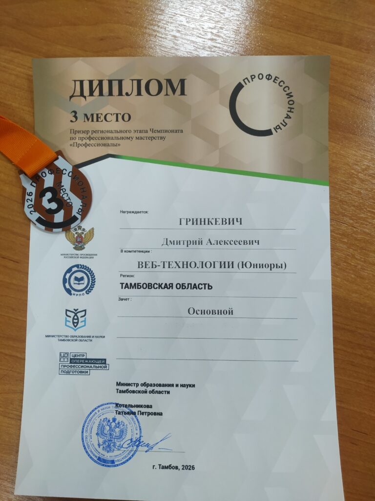 По итогам напряжённой борьбы обучающийся Центра цифрового образования детей «IT- куб.Тамбов» Гринкевич Дмитрий занял почетное 3 место!!!